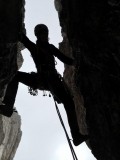 - 4. vtis (po poldnevni turi in šibanju domov - mularija pa to, saj veste ...): Uh, kar konkretna smer, skala pa za prste polizat. Če ne bi izgubili cele ure z reševanjem zataknjene vrvi, bi bilo kičasto. Hja, tk je: vsaka tura je avantura! Maja je pa res carica, kk z lahkoto je zlezla čez tisto šestico!