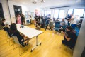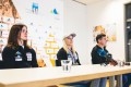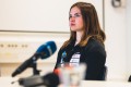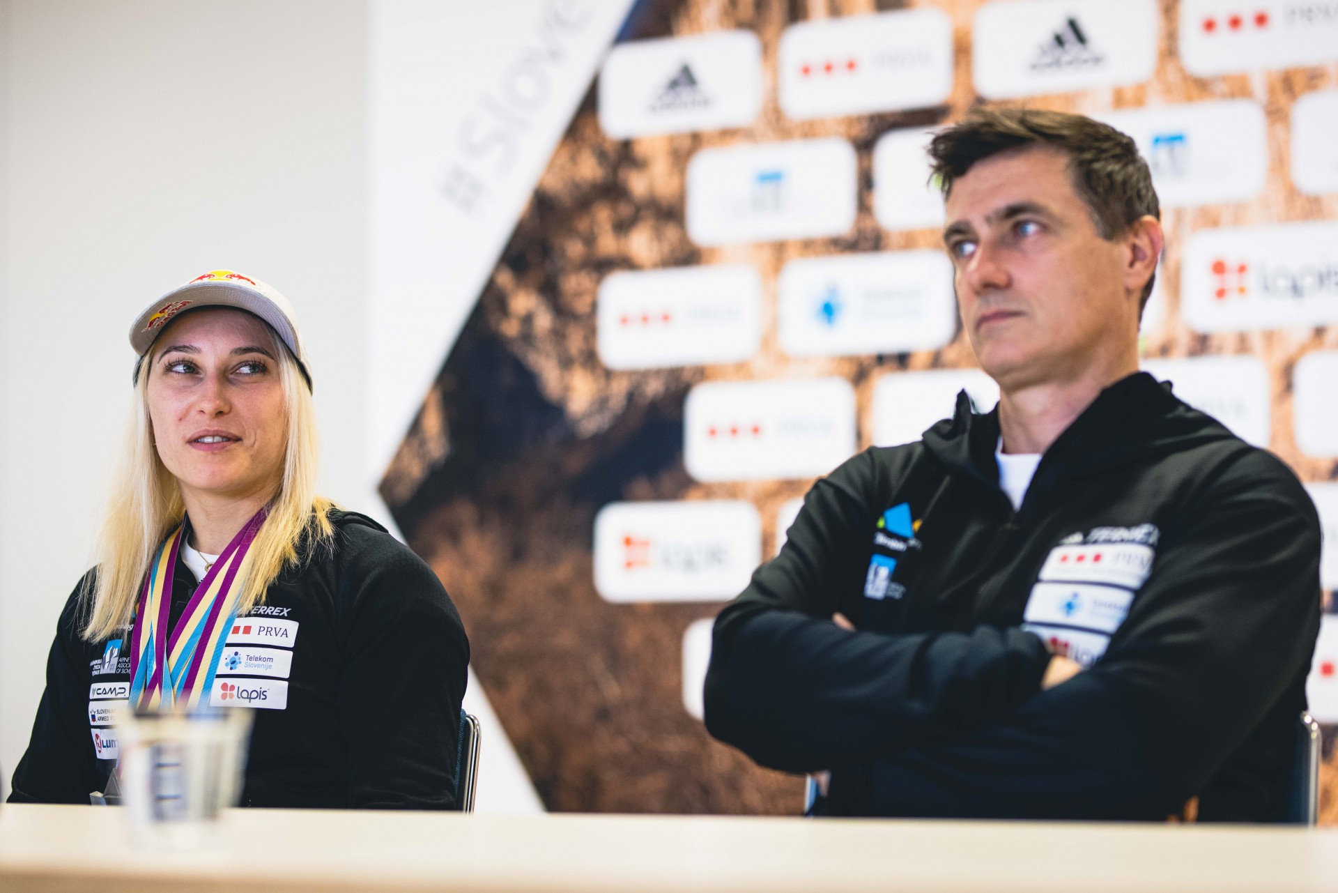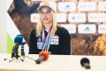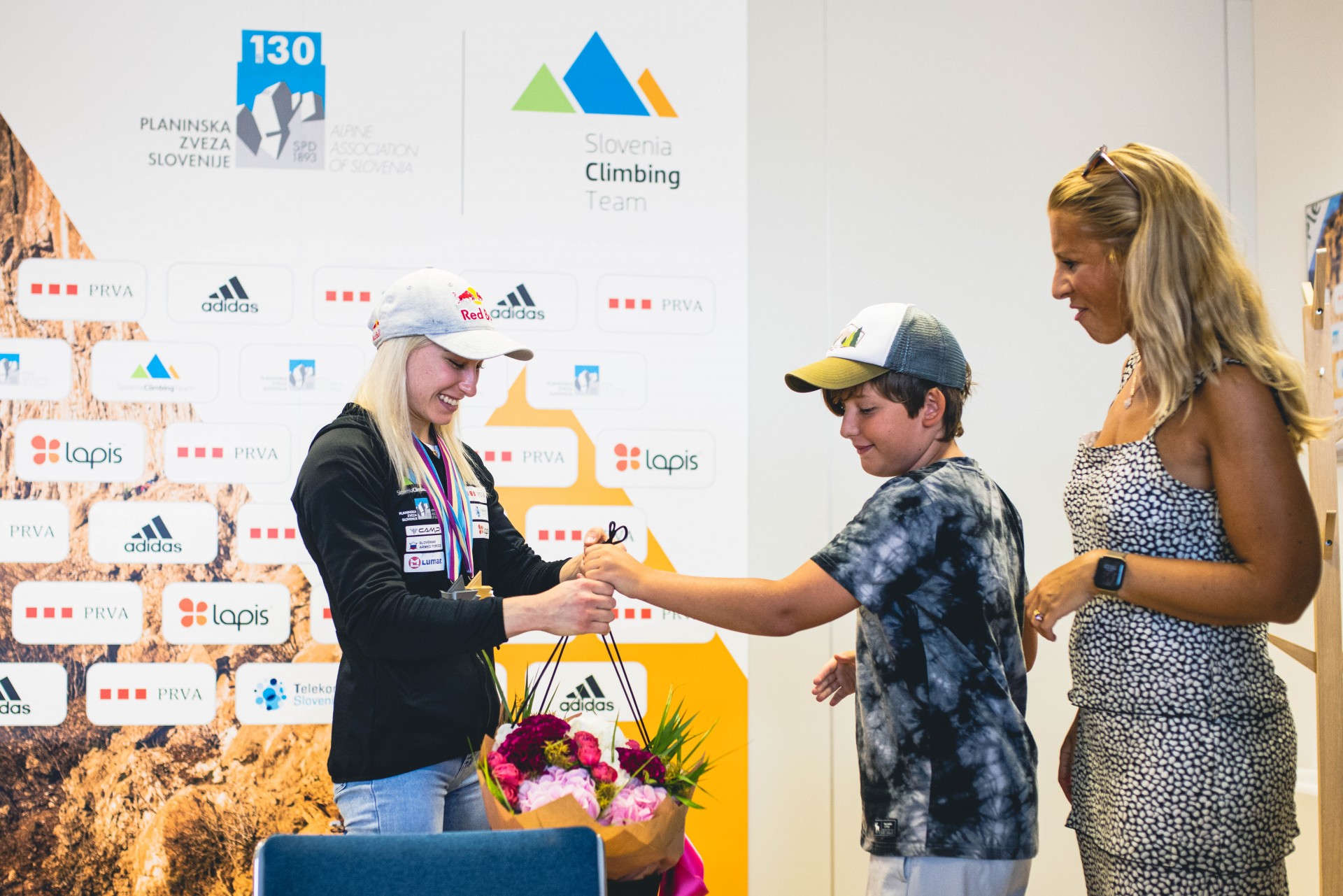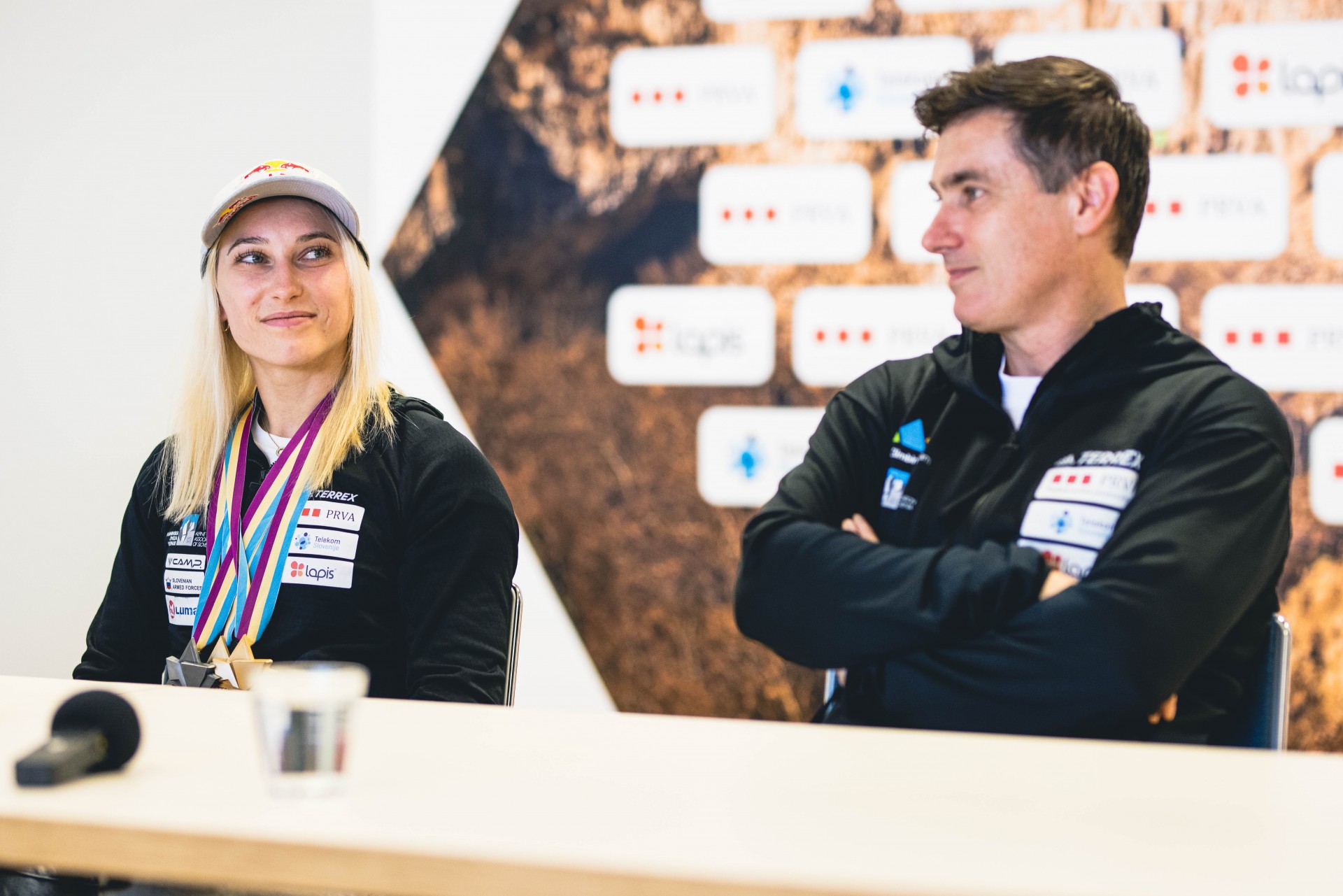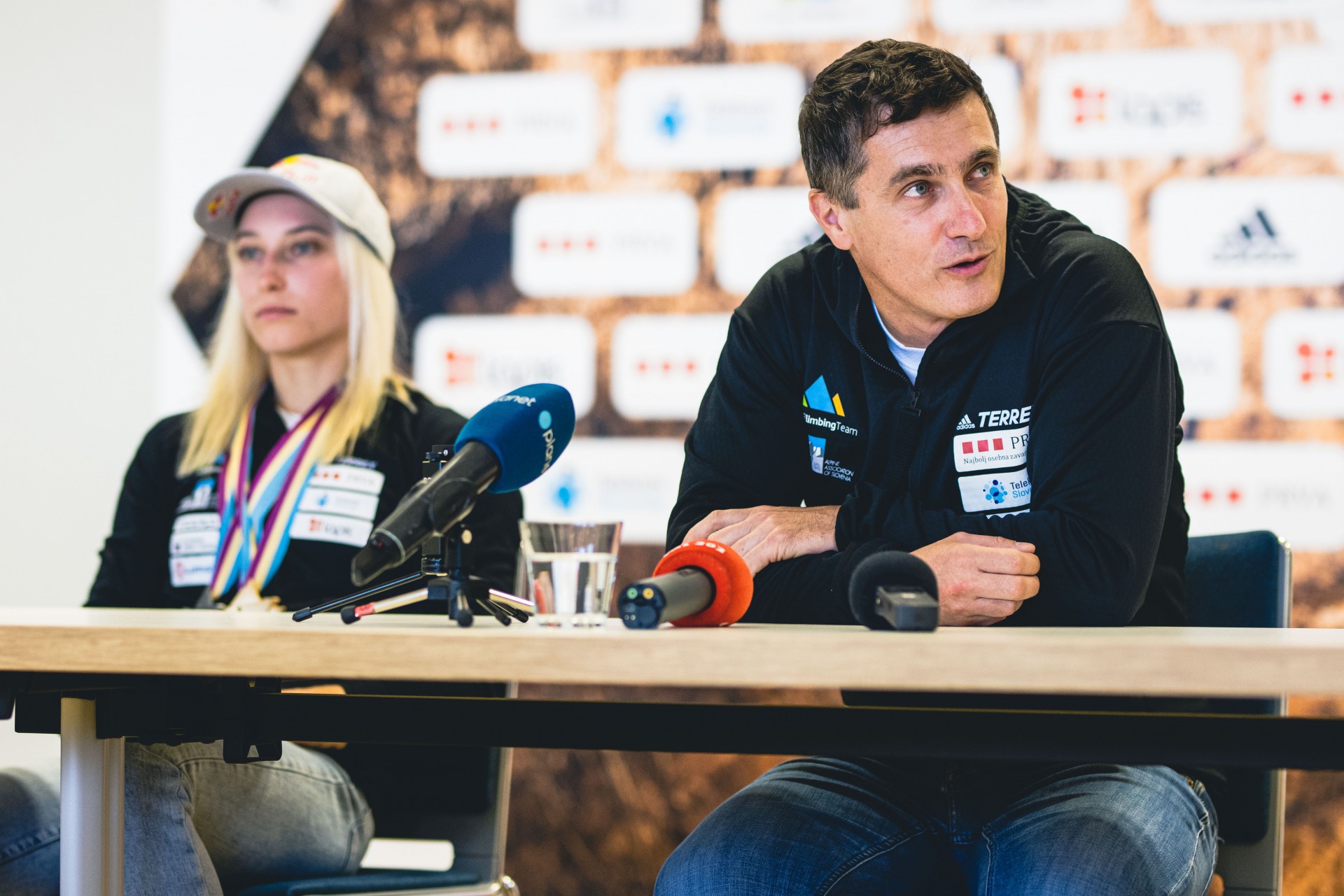 Vita Lukan, Janja Garnbret in Gorazd Hren na novinarski konferenci (foto Grega Valančič)