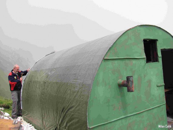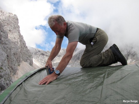 Zdenka Mihelič4 / 8Bivak sta s plastično ponjavo zaščitila Marjan Ručigaj in Milan Čelik (na sliki), foto: Marjan Ručigaj