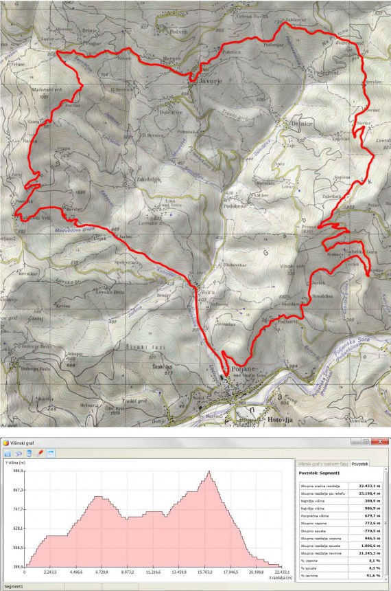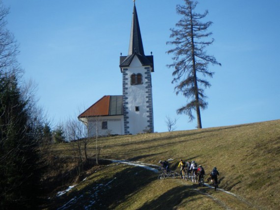 Jože Rovan, sobota, 31. marec 2012, ob 9.40 uri Opravljen še četrti predogled, našli smo še eno lepo varianto poti, ki pomeni manj asfalta in dodaten spust, za katerega pa se bo treba še malce potruditi navzgor. Zgoraj vrisana trasa je osnovna smer ture, primerna za vsakogar, če le ima dovolj volje za poganjanje (oz. hojo) v breg. Spusti so zmerni, lahko ste brez skrbi. Ker pa si nekateri zagotovo želite zahtevnejših spustov, se boste takšni lahko dvakrat ločili od osnovne smeri in si dali duška. Če le ne bo dež preveč razmočil podlage. Kaj je že to dež? Hja, za soncem pride dež, takrat ko je to najmanj treba. Lani spomladi smo imeli srečo, sonce se je smejalo ves dan, zbralo se nas je skoraj štirideset. Tudi jeseni ni bilo dežja, saj je snežilo . Toda tistih dvanajst, ki se niso ustrašili vremena, so rekli, da je bilo prav fajn. Držimo pesti za lepo vreme