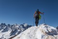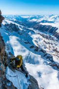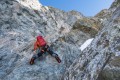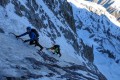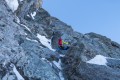 Matevž v steni Rateauja. V ozadju se vidi La Meije.