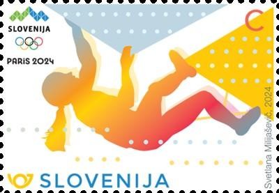Olimpijska znamka Pošte Slovenija z motivom športnega plezanja.