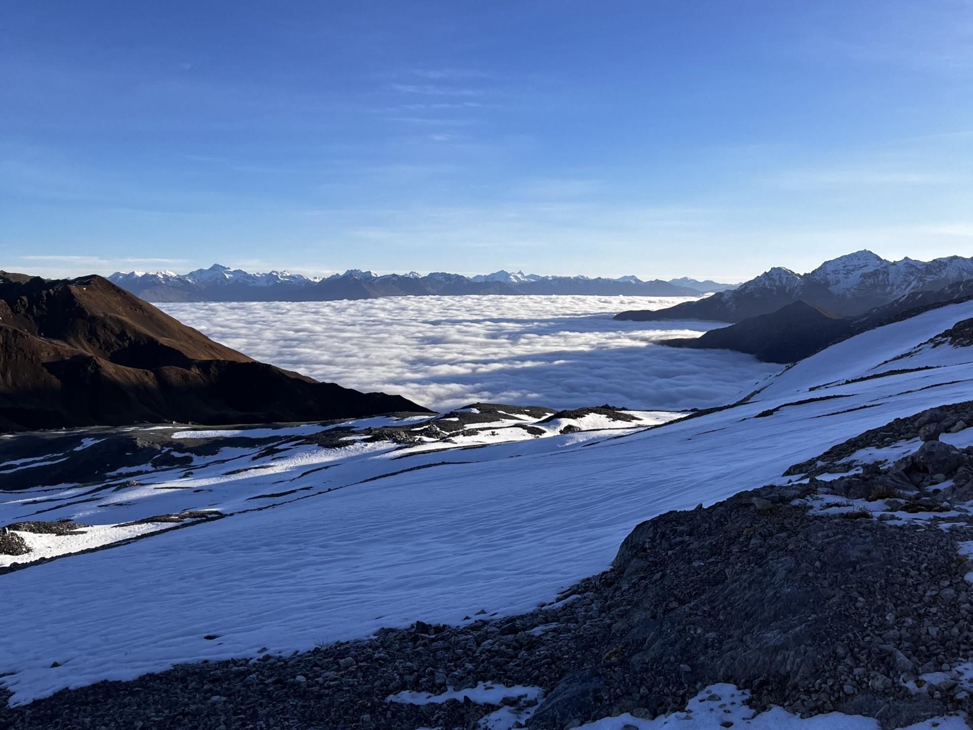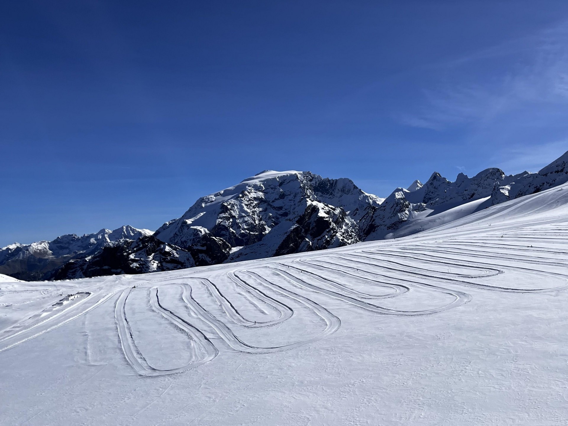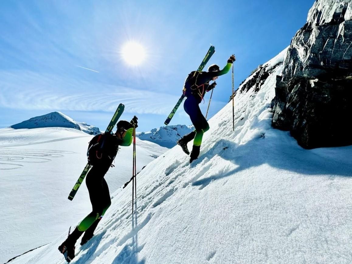 Priprave tekmovalnih turnih smučarjev na prelazu Stelvio