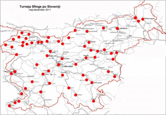 Sfinga je od maja do decembra 2011 obiskala številne kraje po Sloveniji, veliko projekcij pa še sledi
