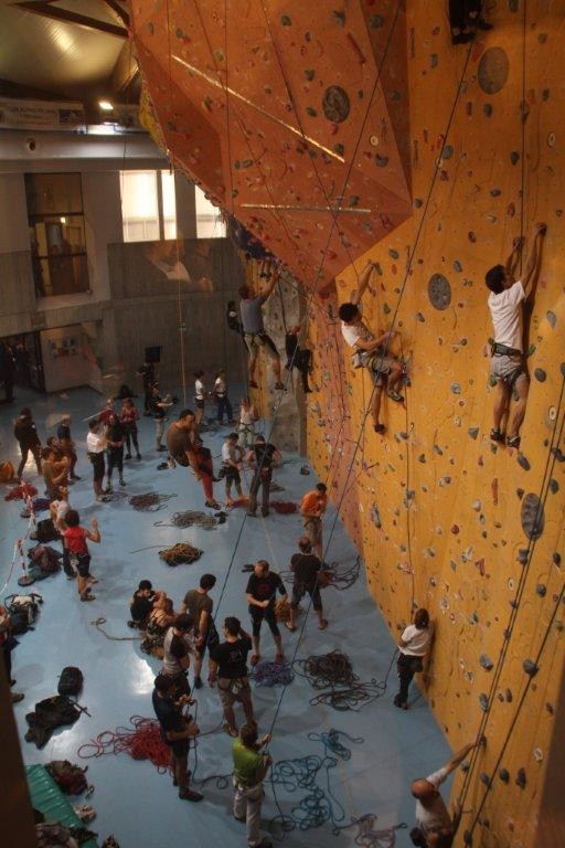 Ogromna stena znotraj športno-planinskega kompleksa s planinsko knjižnico