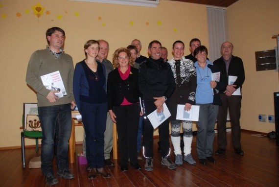 Predsedniki zamejskih planinskih društev, ki so predsednici PDR Benečije Luisi Battistig izročili spominska darila