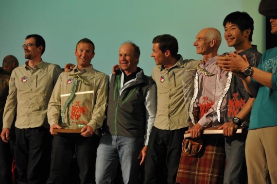 Himalajski veteran Sandy Allan (na sredi), ki je z Rickom Allenom (oba Velika Britanija) preplezal najdaljši greben na katerega od 8-tisočakov - greben Mazeno na Nanga Parbat. Foto Klemen Gričar