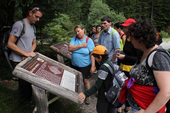 Z desne TNP nadzornik Jernej Legat, vodja Slovenskega planinskega muzeja in podpredsednik PZS Miro Eržen, ter kustosinja SPM Elizabeta Gradnik