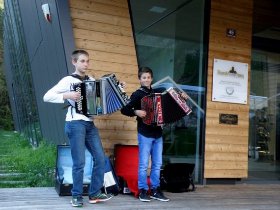 Harmonikaša Tomaž Puc in Timotej Mikuž iz Podkraja