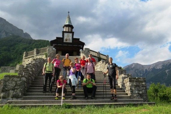 Pohod v Javorco - planinci pred cerkvijo Sv. Duha