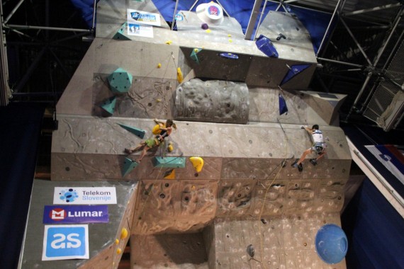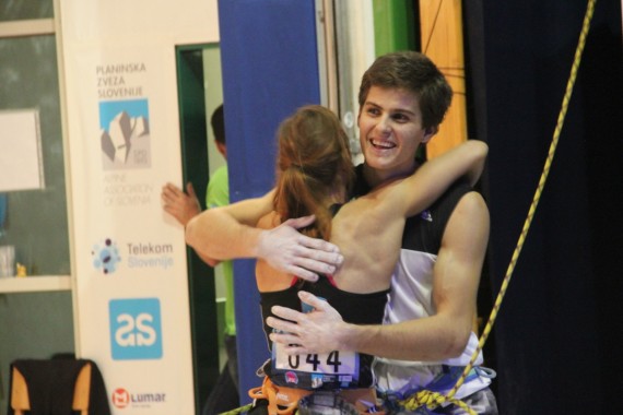 Tjaša Kalan in Urban Primožič bok ob boku v kranjski steni