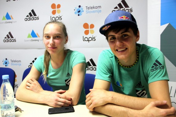 Janja Garnbret, svetovna prvakinja v težavnosti, in Domen Škofic, oba skupna zmagovalca svetovnega pokala 2016 v težavnosti