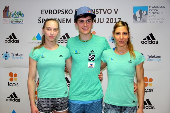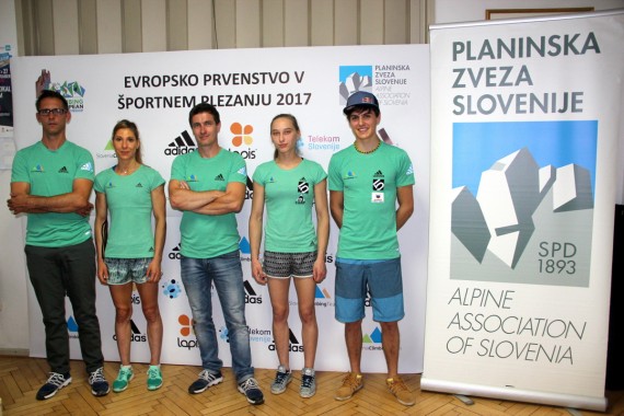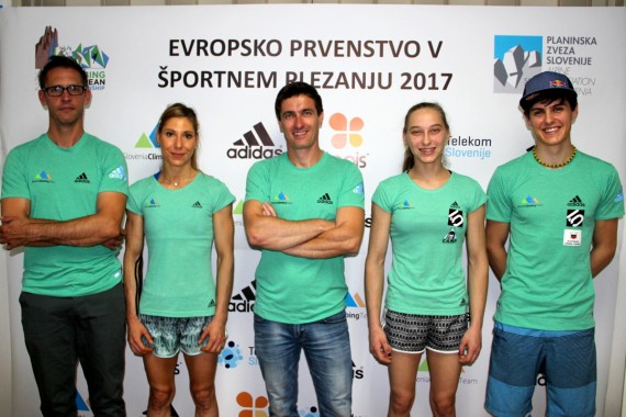 Luka Fonda, Mina Markovič, Gorazd Hren, Janja Garnbret in Domen Škofic pred EP 2017 v težavnosti