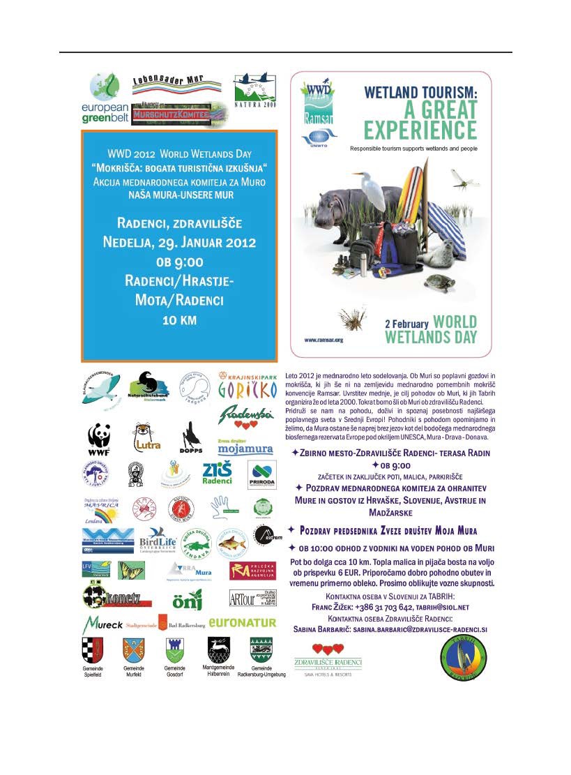- Sabina Barbarič, E-mail sabina.barbaric@zdravilisce-radenci.si | Vabimo vas, da se nam pridružite na pohodu ob reki Muri (Svetovni dan Mokrišč 2012),