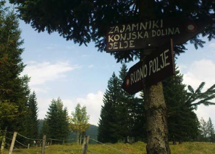 • Prevoz: organiziran. • Izhodišče poti: Pokljuka, Rudno polje (1347 m). • Zahtevnost poti: LAHKA pot. • Načrt poti: Pokljuka, Rudno polje (1347 m) - Zajamniki (1280 m) - Uskovnica (1154 m) - Konjščica (1348 m) - Rudno polje (1347 m). • Čas hoje (okvirno): 6 ur. • Opis: Tokrat se odpravljamo na Pokljuko in njene tri lepe planine. Uskovnica je prostrano območje dobršnega zahodnega obrobja pokljuške planote. Recimo, da je tu gori kraljestvo sonca in opojnih razgledov po bohinjskih gorah. Uskovnica je stoletja dajala ton bohinjskemu planšarstvu, danes pa je nanjo segla tudi cesta in spremenila pogoje. Zajamniki in njene koče, urejene v 'ulici' so v naših planinah nekaj posebnega. Tine Mihelič je nekje zapisal, da so Zajamniki najvišje ležeča "Triglavska ulica". Zajamniki so gorski biser s čudovitim razgledom. Znamenita ulica razpolavlja planino na dvoje, ob njej so nanizane hiše v dolgi vrsti. Značilna za stanove je brunasta konstrukcija ostrešja, ki se dviguje vse do slemena. Lesen opaž pogosto zakriva brunasto konstrukcijo stavbe. Planina Konjščica se nahaja med Viševnikom in grebenom Slemena, katerega najvišji vrh je Ablanca. V osrednjem delu planine se nahaja nekaj pastirskih koč, ena izmed njih pa je preurejena v sirarno. Na prostrani planini je tudi izvir s pitno vodo, studenček in lesen križ.