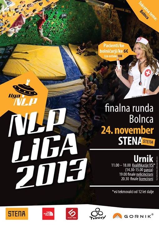 NLB liga | Vrsta dogodka | Športno plezanje | Kdaj | 24. 11. 2013 | Kje | v Ljubljani | Organizator | NLB liga plezanja |