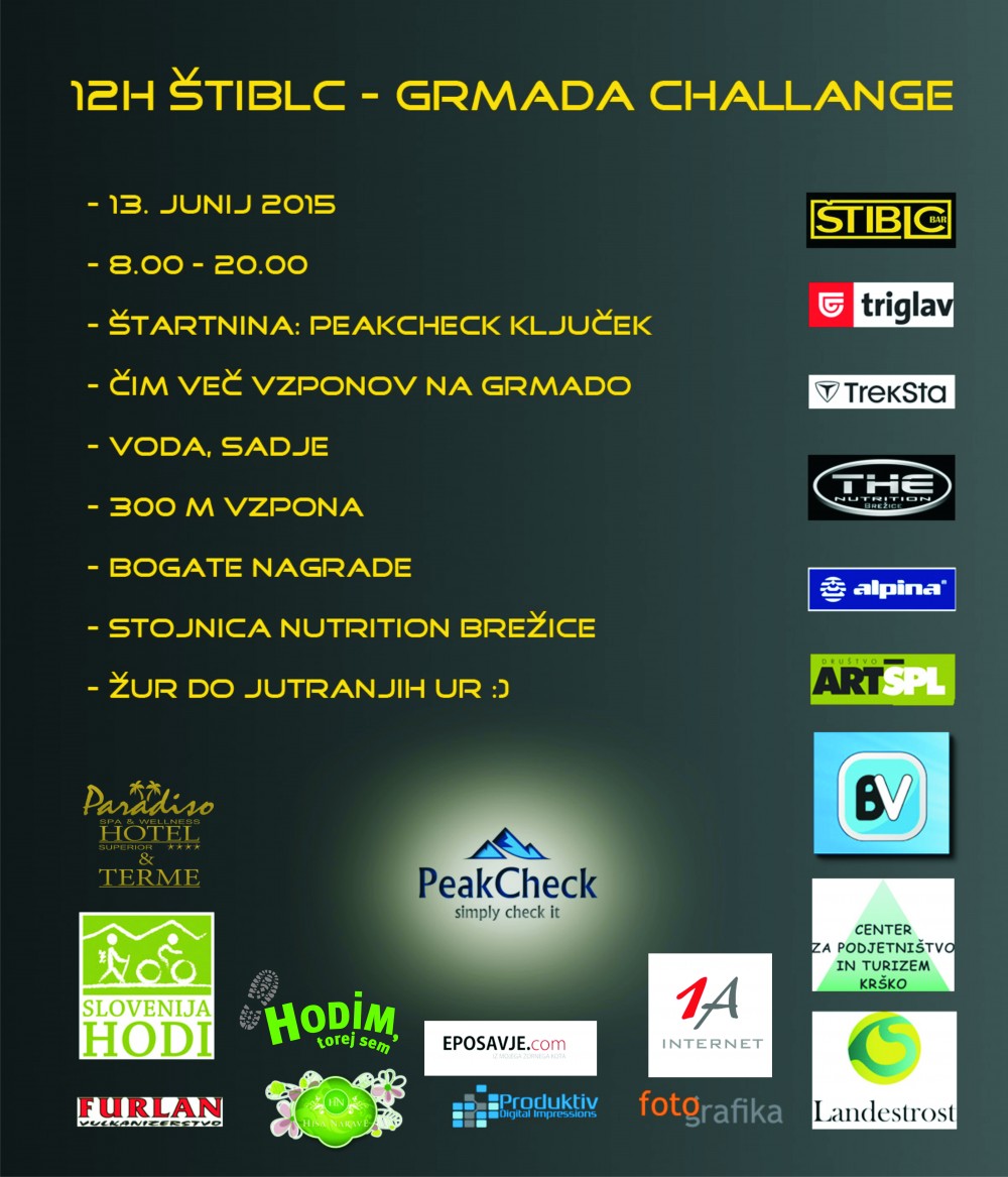 Tokrat se bodo vzponi beležili v Štiblc baru na Vidmu in na Grmadi. Za pohodnike bo poskrbljeno s pijačo, osvežitvijo s sadjem, energijskimi napitki in spremljevalnim programom s stojnicami pred Štiblc barom skozi ves dan. Za štartnino šteje nakup Peak Check ključka (5 €), ki ga vsak udeleženec kasneje lahko uporablja kot elektronsko planinsko knjižico in beleži vzpone na še 12 vrhovih po Sloveniji.