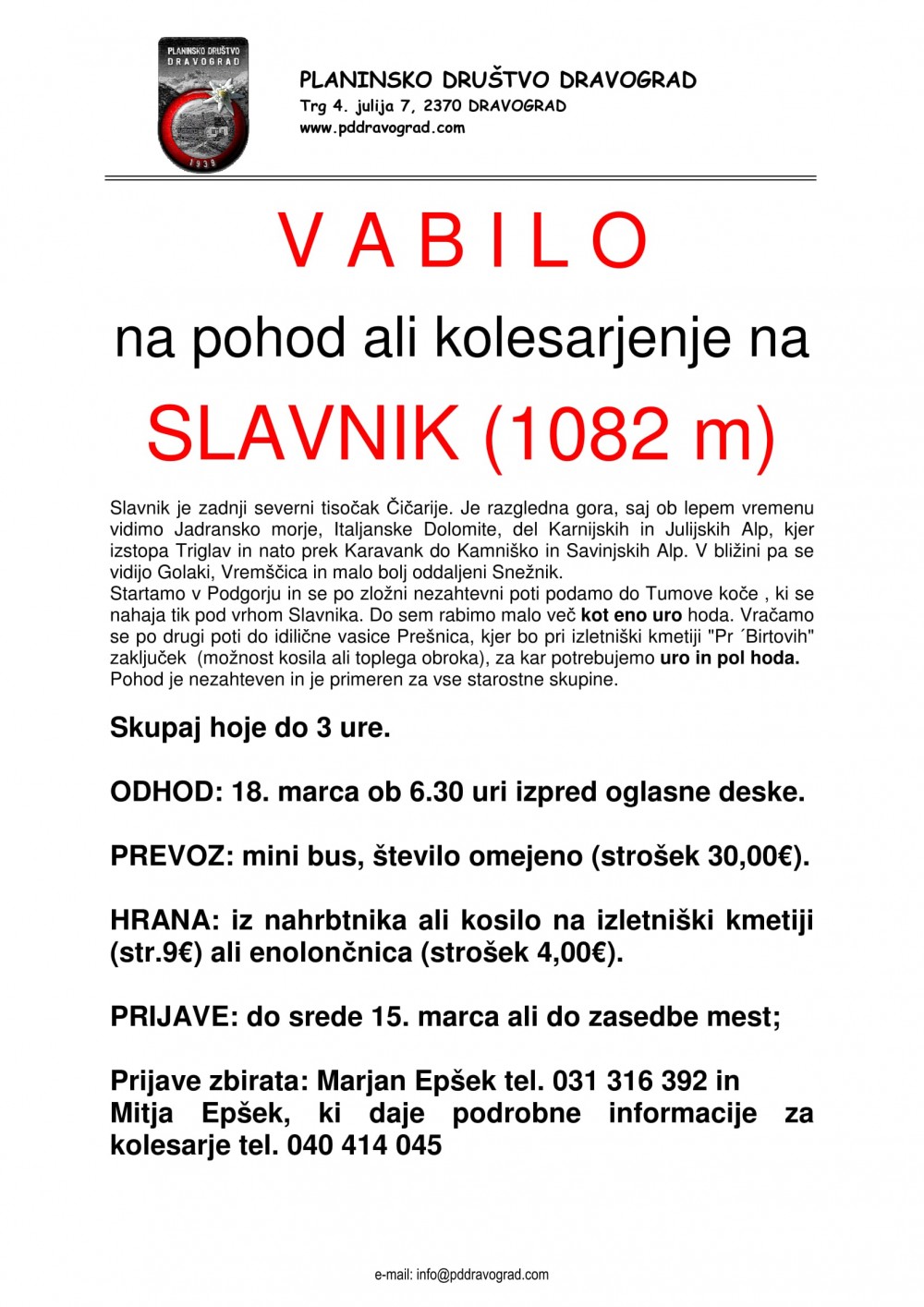 18. 3. 2017 / Izlet, ogledov: 1619Slavnik - peš ali s kolesom Komentarji