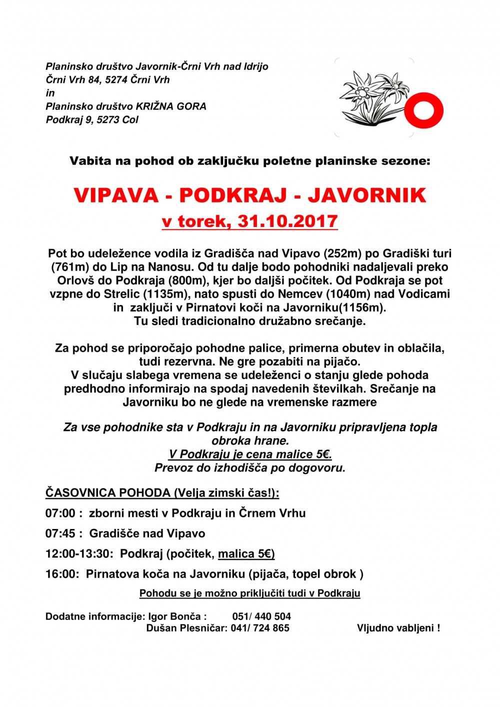 31. 10. 2017 / Pohod, ogledov: 1281Pohod Vipava - Podkraj - Javornik Komentarji