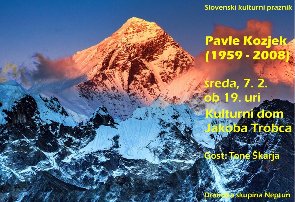 V sredo, 7. februarja, ob 19. uri vabljeni v Kulturni dom Jakoba Tropca v Polhovem Gradcu na večer v spomin na Pavleta Kozjeka. Predvečer kulturnega praznika je dramsko društvo Neptun namenilo našemu alpinistu, ki se je smrtno ponesrečil na Muztagh Towerju. Vzemite si čas ter preživite drugačen in nenavaden večer, s katerim boste obogatili sebe, zbirali vtise še nekaj dni, spoznali moč gore ter razmišljali o Pavletovi misli: Nikdar se ne ustrašite težav. Vsak od nas zmore veliko več, kot si sam predstavlja.