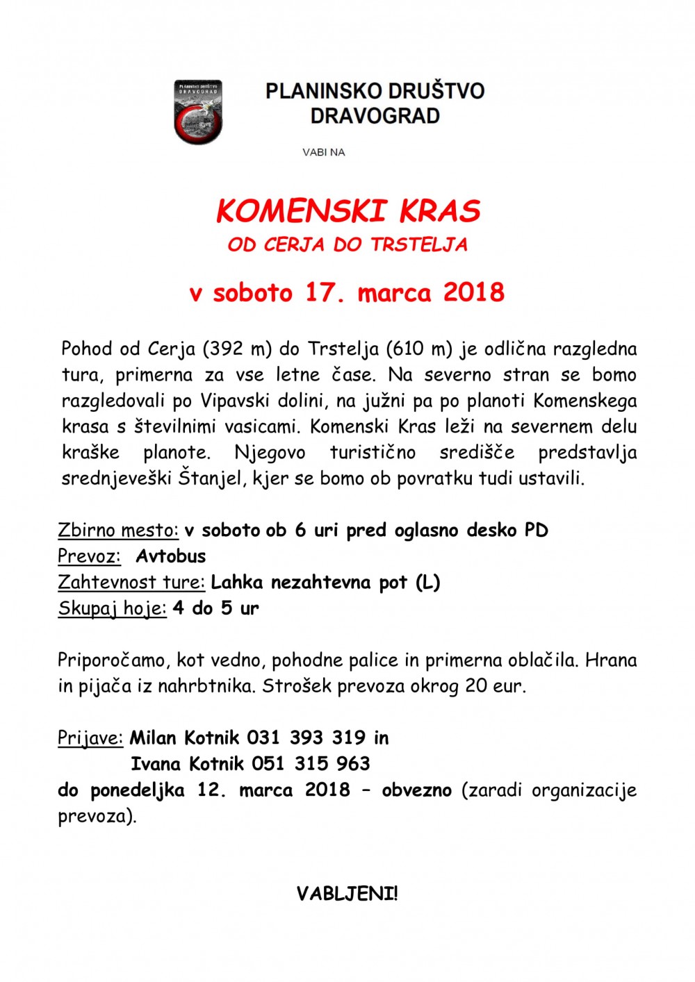 17. 3. 2018 / Izlet, ogledov: 1501Komenski Kras - od Cerja do Trstelja Komentarji
