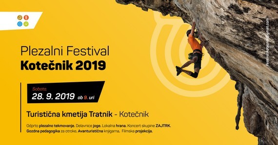 Festival Kotečnik | Vrsta dogodka | Športno plezanje | Območje | Posavsko hribovje | Kdaj | 28. 9. 2019 | Kje | Kotečnik | Povezava | https://www.facebook.com/festivalkotecnik/ | Primernost | Primerno za družine | Cilj festivala Kotečnik je enkrat letno združiti vse plezalce, ki plezajo v Kotečniku. Namenjen je vsem: začetnikom, rekreativcem in profesionalcem. V sproščenem ambientu z malo tekmovalnega pridiha in v duhu športa se bo odvijalo tekmovanje v treh kategorijah, kjer bo imela vsaka naveza možnost dokazati svoje kvalitete ne glede na višino ocene, ki jo je sposobna plezati.