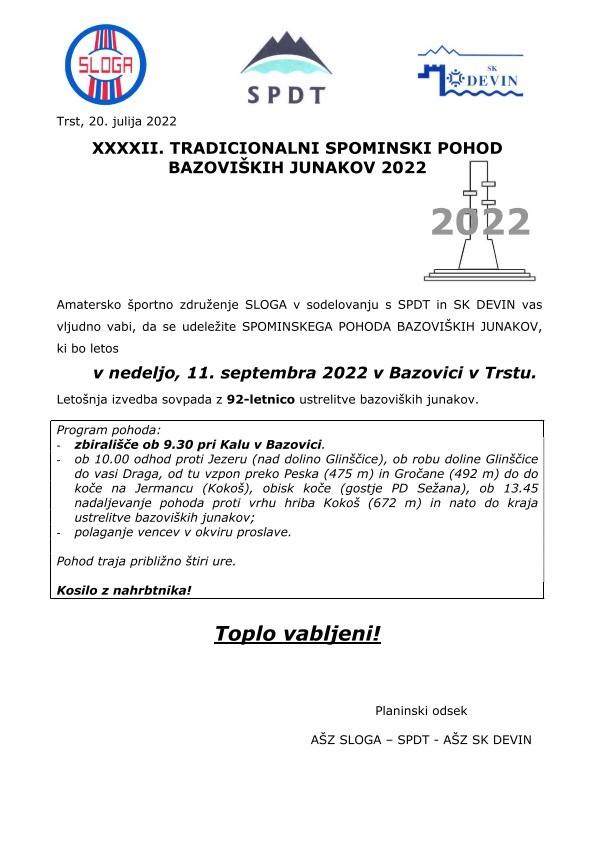 11. 9. 2022, ogledov: 413XXXXII. TRADICIONALNI SPOMINSKI POHOD BAZOVIŠKIH JUNAKOV 2022 Komentarji