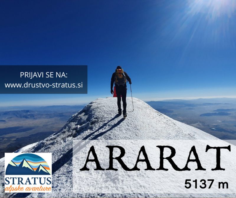 10. 6. 2023 / Treking, ogledov: 743Ararat, 5137 m, Turčija | Vrsta dogodka | Treking | Območje | Tujina | Kdaj | 10. 6. 2023 17:00 | Traja do | 17. 6. 2023 (8 dni) 20:00 | Kje | Turčija | Društvo | Alpsko društvo Stratus | Organizator | Alpsko društvo Stratus | Vodnik / kontakt | Silvo Babič | Prijave | https://www.drustvo-stratus.si | Informacije | drustvo.stratus@gmail.com | Pot | Označena pot | Odhod 10.06.2023, da bi se lotili ob lepem vremenu vzpona na Ararat 5137m, ter zaključili z masažo v "turški savni" - hamamu.