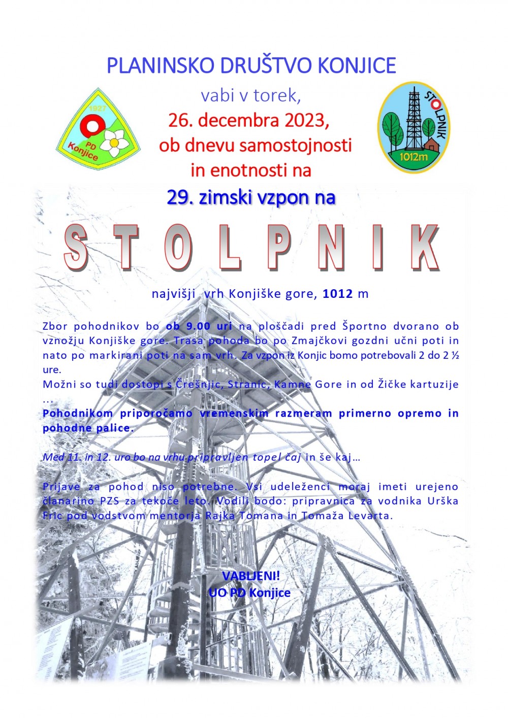 26. 12. 2023 / Pohod, ogledov: 39629. zimski pohod na Stolpnik Komentarji