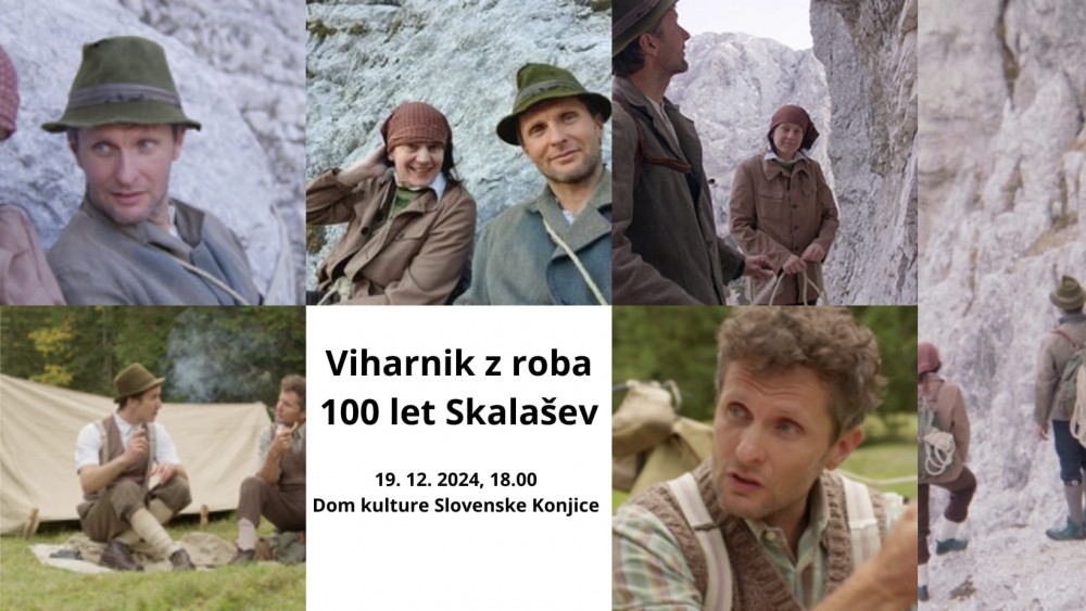 Viharnik z roba - 100 let Skalašev | Slovenske Konjice | Vrsta dogodka | Kulturna prireditev | Kdaj | 19. 12. 2024 18:00 | Kje | Dom kulture Slovenske Konjice | Organizator | Splošna knjižnica Slovenske Konjice | Povezava | https://tickonjice.si/dogodek/viharnik-z-roba-100-let-skalasev/ | VIHARNIK Z ROBA – 100 LET SKALAŠEV Četrtek, 19. december, ob 18. uri Dom kulture Slovenske Konjice VSTOP PROST