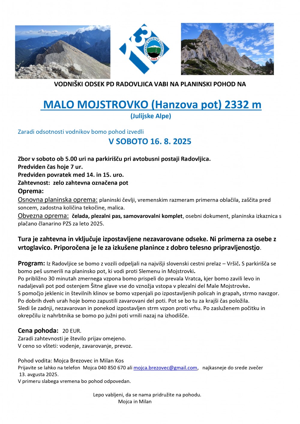 ČASOVNI TRAK Slovensko planinstvo skozi čas