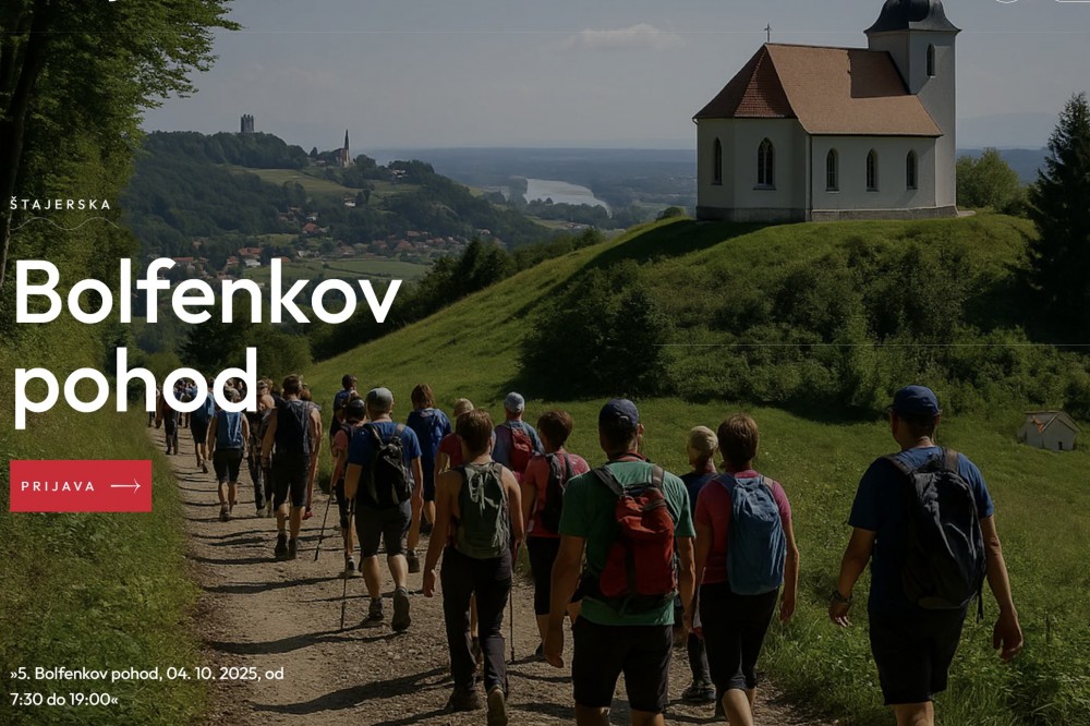 4. 10. 2025 / Pohod, ogledov: 1625. Bolfenkov pohod | Vrsta dogodka | Pohod | Kdaj | 4. 10. 2025 07:30 | Kje | Pohorje | Povezava | https://www.stajerska.si/5-bolfenkov-pohod/ | BOLFENKOV POHOD Datum: Sobota, 4. oktober 2025 Ura: 6.55 - 7:45 do 18:50 - 20:00 Začetek: OŠ Trnovska vas ali Cerkev Sv. Bolfenka Trnovska vas Cilj: Cerkev Sv. Bolfenka na Mariborskem Pohorju Dolžina poti: 35 km Predviden čas hoje: 10,5 ur (vključno s postanki) Skupna višinska razlika: približno 1.100 m Hrana: iz nahrbtnika ali možnost nakupa na poti