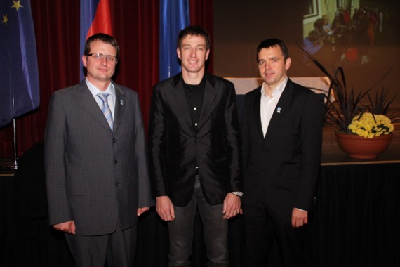Predsednik PZS Bojan Rotovnik, olimpionik Iztok Čop in podpredsednica PZS Slavica Tovšak