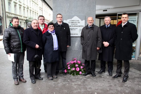 glavnega mesta (zato je napis plošče dvojezičen). Spominjala nas bo, da nas -Slovencev