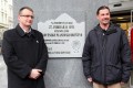 Spominsko ploščo na stebru Veleblagovnice Name v Ljubljani z zapisanim mejnikom organiziranega slovenskega planinstva sta svečano odkrila predsednik Planinske zveze Slovenije Bojan Rotovnik in vodja marketinga Name Maruša Komac