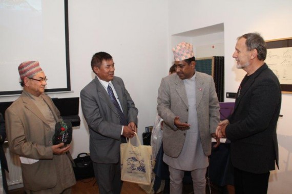 Sloveniji mag. Aswin K. Shrestha,odpravnik poslov Nepala v Berlinu Prakash Mani Paudel, predsednik PZS Bojan Rotovnik, alpinist, himalajec in
