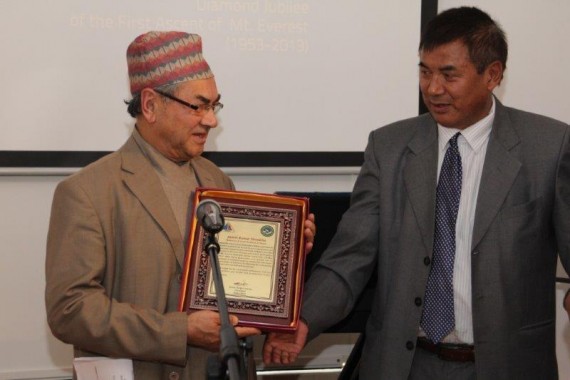 podeljevali sekretar Madhu Sudan Burlakoti, nekdanji predsednik Planinske zveze Nepala Ang