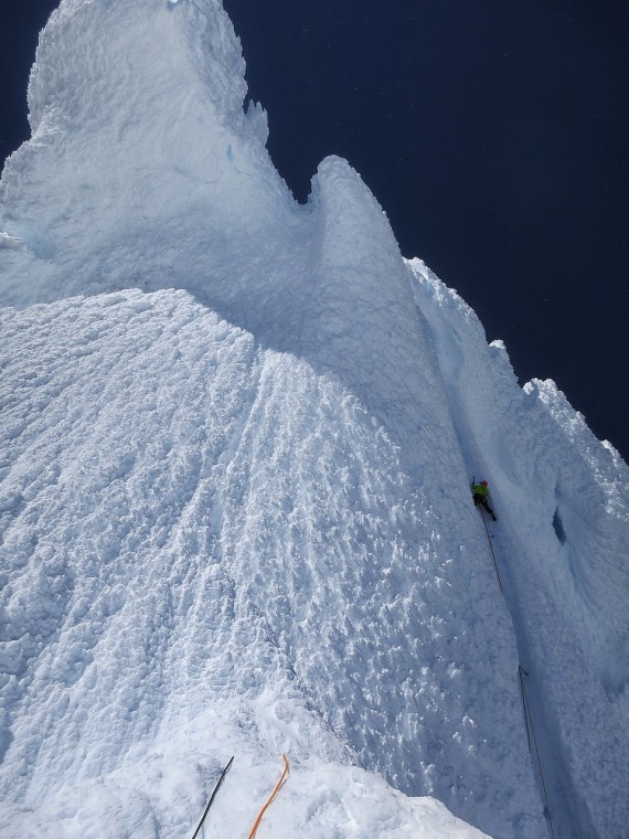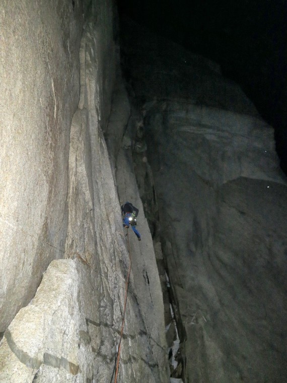 6c, zadnjih 150 metrov do vrha stene pa se pridružila smeri El Zorro. »Stena se je z devetnajstimi raztežaji in