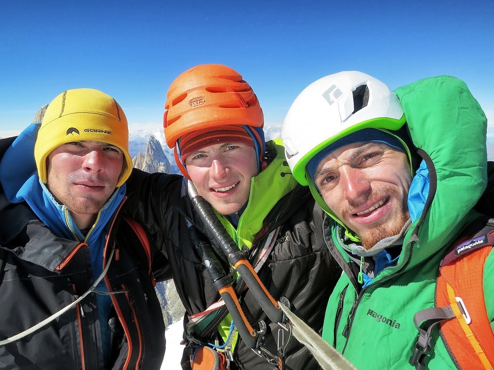 Tadej Krišelj, Luka Lindič in Luka Krajnc v Cerro Torreju (foto Luka Krajnc)