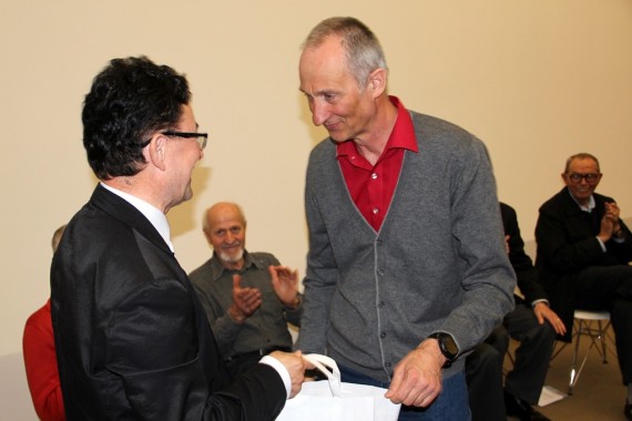 Dušanom Škodičem in Emilom Pevcem jubileju Planinskega vestnika poklonili v