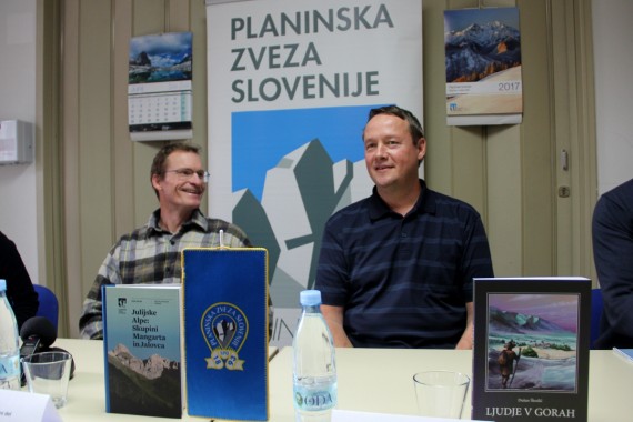 Andraž Poljanec, avtor vodnika Julijske Alpe: južni del, ki izide novembra, in Dušan Škodič, avtor zbirke zgodovinskih zgodb Ljudje v gorah. (foto Manca Čujež)