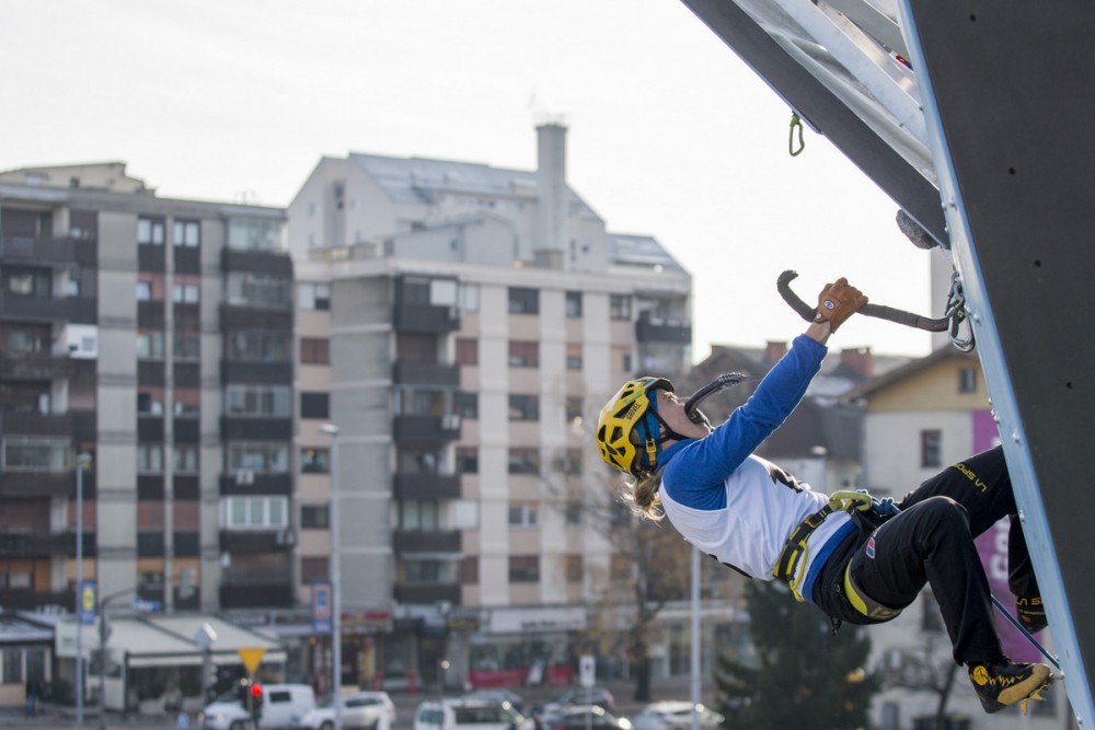 Tekma evropskega pokala v lednem plezanju v središču Domžal je zelo atraktivna za gledalce, finale se začne 1. decembra ob 18. uri (foto Urban Urbanc)