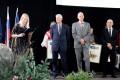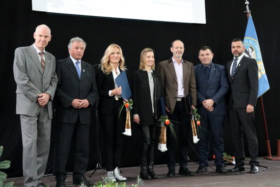 Svečana podelitev najvišjih priznanj PZS za leto 2018 v Mojstrani, kjer so se prejemnikom priznanj z govori poklonili Janez Hrovat, Jože Rovan, Gregor Berce in Jernej Hudolin (foto Manca Čujež)