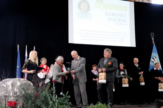 - Darinka Kocbek (PD Miklavž) za vsa opravljena administrativna dela v PD in za vodenje vseh izletov, pa naj bodo to otroci ali starejši planinci, ki jih ni samo vodila, ampak tudi vzgajala v planinskem duhu,