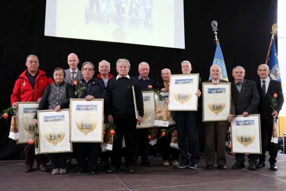 Prejemniki spominskih plaket PZS 2018 ob življenjskih jubilejih s predsednikom PZS Jožetom Rovanom in županom Občine Kranjska Gora Janezom Hrovatom (foto Manca Čujež)