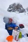 ki ju je prisilil v gibanje po vseh štirih. Po dnevu v bazi sta opravila dober, z močnimi pršnimi plazovi začinjen poskus v vzhodni steni Golgothe