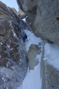 Zaradi močnega vetra je v stenah veliko napihanega snega, zato sva v