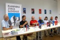 Planinske knjižne novosti so predstavili Vladimir Habjan, Jože Drab, Andrej Mašera, Rado Kočevar, Mojca Volkar Trobevšek, Joža Mihelič in Stanka Klakočer (foto Manca Ogrin)