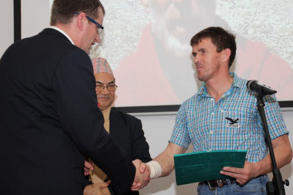 Priznanja je alpinistom podelil častni konzul Nepala v Sloveniji mag. Aswin Shrestha v spremstvu predsednika Planinske zveze Slovenije Bojana Rotovnika. Prejeli so jih naslednji alpinisti z vzponom na Everest, ki so ponesli Nepal in slovenski alpinizem v svet: Andrej Štremfelj, skupaj z Nejcem Zaplotnikom sta bila prva Slovenca na vrhu Sveta (Andrej je edini Slovenec z dvakratnim pristopom na vrh Everesta); Andrejeva žena Marija Štremfelj (z možem Andrejem sta na Everestu stala kot prvi zakonski par na svetu), Viki Grošelj, Davo Karničar, Tadej Golob, Matej Flis, Gregor Lačen in Tomaž Jakofčič, ki je opravil prvi slovenski vodniški vzpon na vrh Everesta. (vse obrazložitve ob prejemu sledijo spodaj)
