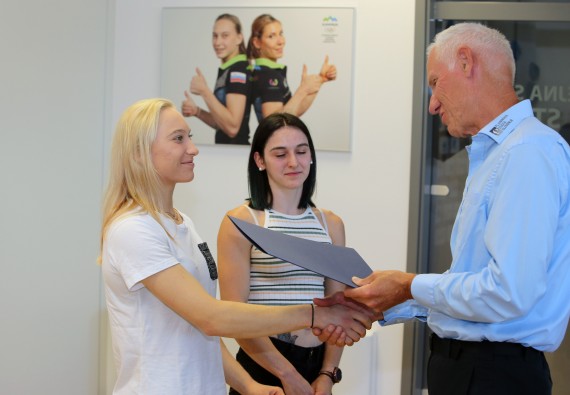 Najboljša slovenska in svetovna športna plezalka Janja Garnbret je v začetku avgusta celotno Slovenijo razveselila z zlato olimpijsko medaljo. Prav tako se je na olimpijskih igrah v Tokiu odlično predstavila še druga slovenska predstavnica Mia Krampl. Njunih uspehov smo v Planinski zvezi Slovenije izredno veseli, saj je s tem slovensko športno plezanje doseglo velik zgodovinski mejnik. Z generalnim sponzorjem reprezentance v športnem plezanju Prvo osebno zavarovalnico smo članom olimpijske odprave pripravili manjši sprejem ter se Janji z nagrado zahvalili za njeno promocijo tovrstne športne dejavnosti.